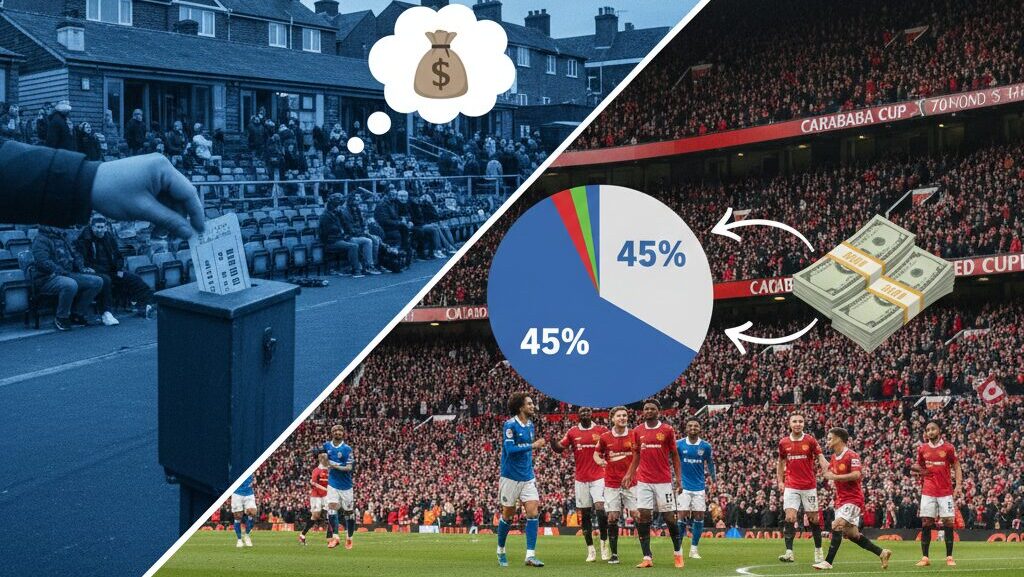 カラバオカップには「ゲート収入(入場料収入)をホームとアウェイで45%ずつ分け合う」という独自のルールがあります。