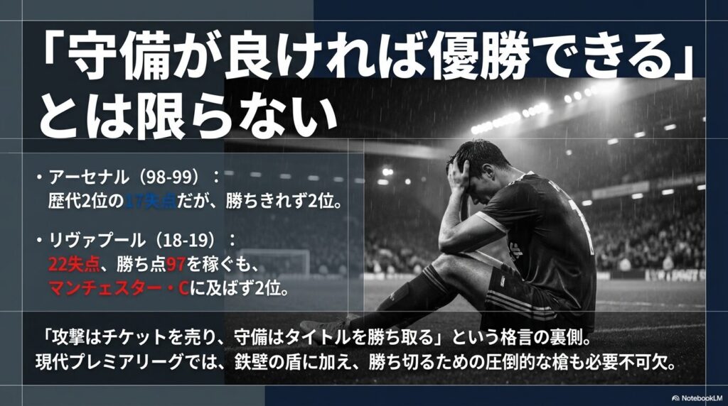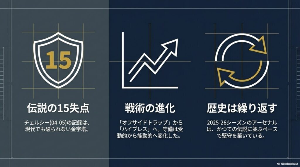 - 2025-26シーズンはアーセナルが歴史的な堅守を見せている。