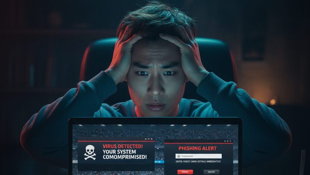 法的なリスクも怖いですけど、もっと身近で、クリックした瞬間に被害に遭う可能性があるのが「サイバー犯罪」のリスクです。