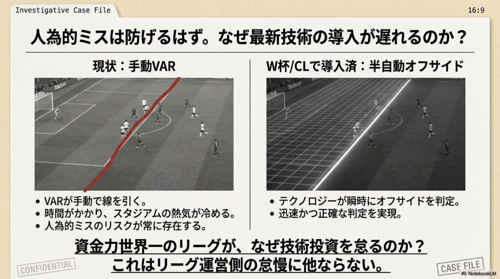 資金力世界一のリーグで、なぜ審判の質だけが低いままなのか。その背景には、驚くべき「経済格差」と「技術的な遅れ」がありました。