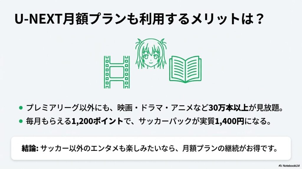 に充てることができ、U-NEXT サッカーパックの購入にも利用可能です。